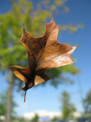 As you can see from the tree in the background, there's not a lot of color change on the trees here yet, but we're starting to see some fall. This dead leaf was resting on my car window when I came out of a store yesterday.